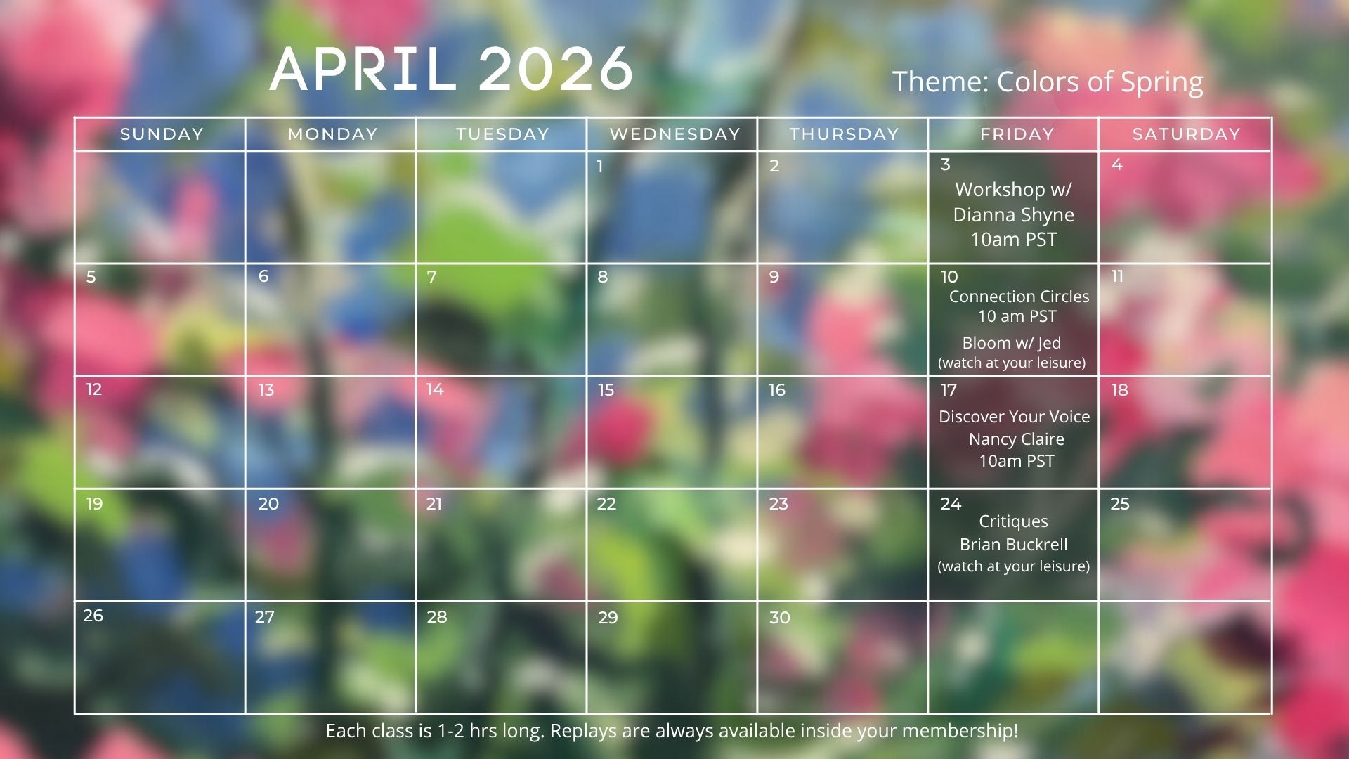 - If you are not able to make the classes LIVE you can watch them afterward when it is convenient for you!